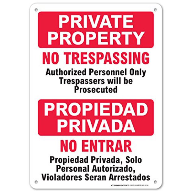 Private Property No Trespassing Sign, Bilingual English/Spanish, Violators Will Be Prosecuted, Authorized Personnel Only, Octagon Shaped Outdoor ...